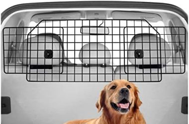 rabbitgoo Dog Car Barrier for SUVs, Adjustable Large Pet Car Gate, Universal-Fit Divider Cargo Area, Heavy-Duty Wire Mesh Dog Car Guard,Van Vehicles Dogs Car Accessories Safety Travel, Standard Model